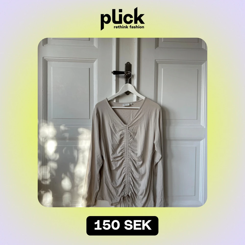 Säljer en superfin beige långärmad topp med snörning framtill. Perfekt för både vardag och fest! Den har en v-ringad design och är i ett mjukt och bekvämt material. Passar perfekt till jeans eller kjol.