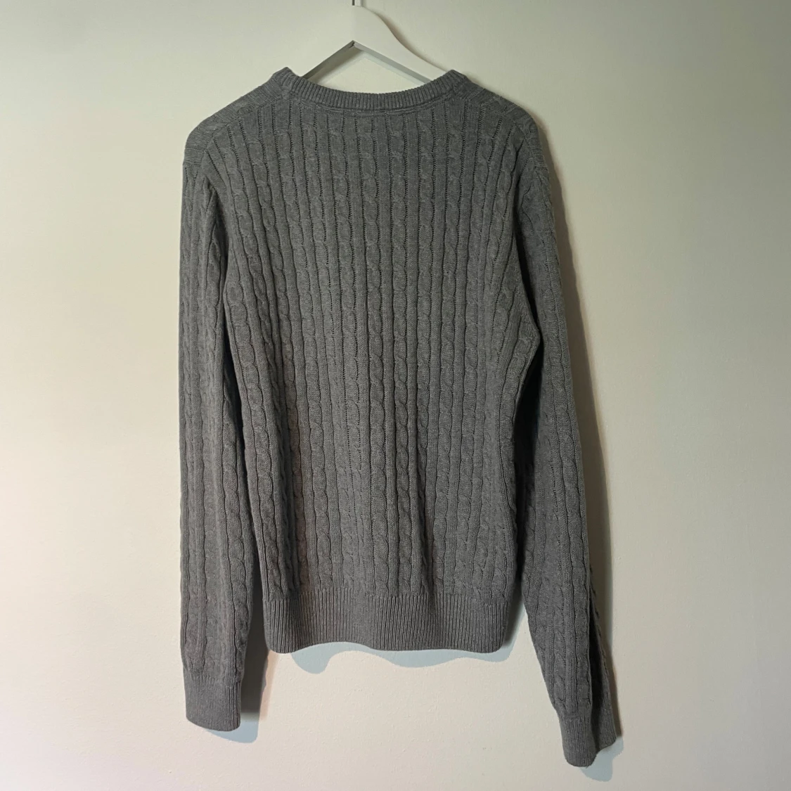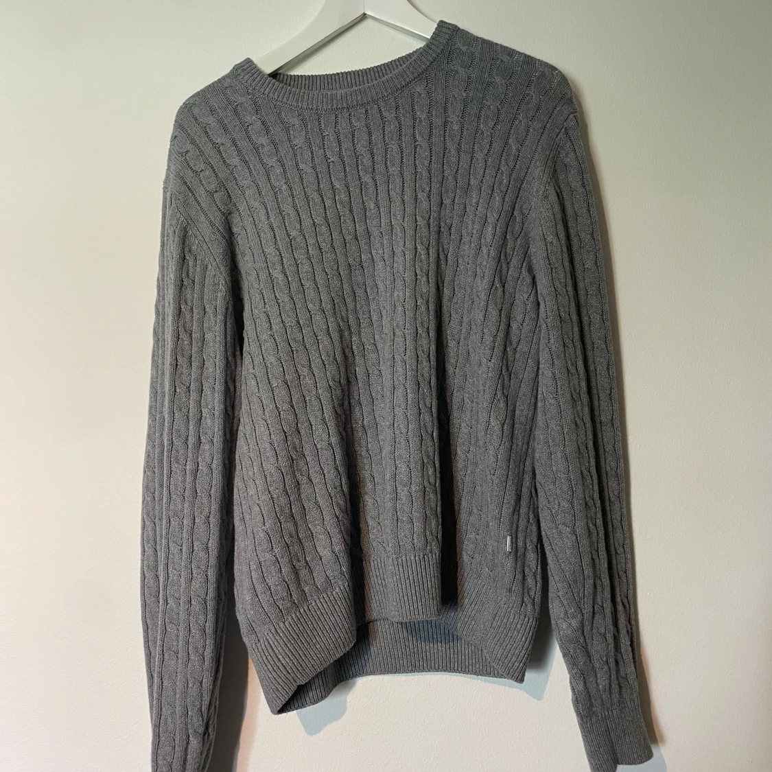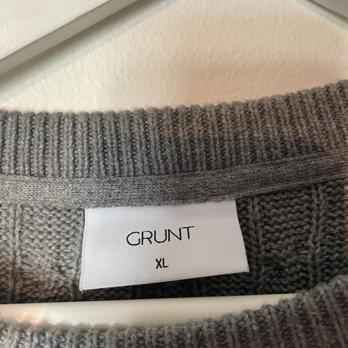 Säljer en grå stickad tröja från Grunt i storlek XL.(obs barn xl, men sitter som S) Tröjan har ett klassiskt kabelstickat mönster, rund hals och långa ärmar. Perfekt för dig som gillar enkel och stilren design med lite extra struktur. Passar dig som vill ha en chill och snygg look. Helt ny.