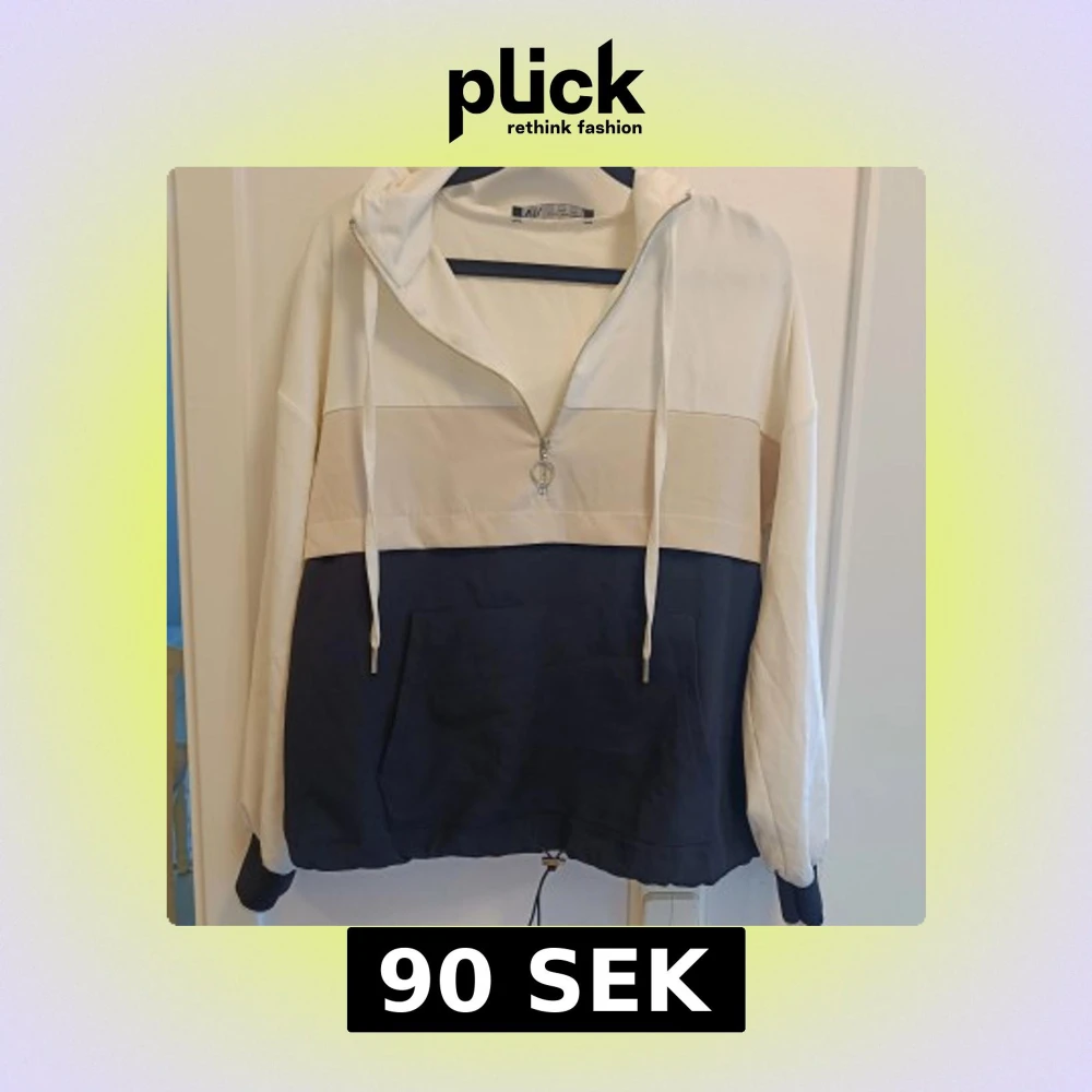 Snygg hoodie från A&I i färgblockad design med vit, beige och marinblå. Half zip framtill, huva med snören och stor magficka. Perfekt för chill dagar och streetstyle. Långärmad och loose passform för extra komfort.