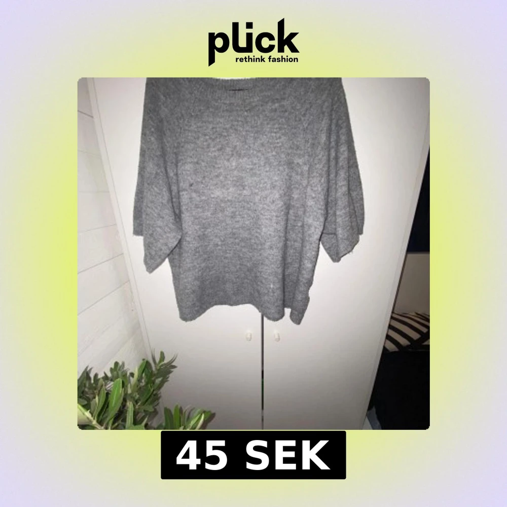 Mysig grå stickad tröja från 157 i storlek XS. Perfekt för hemma kvällar med sin bekväma passform och luftiga material. Tröjan har halv långa ärmar och en klassisk rund halsringning. Användning syns då hela varan är lite nopprig, men det funkar🙃