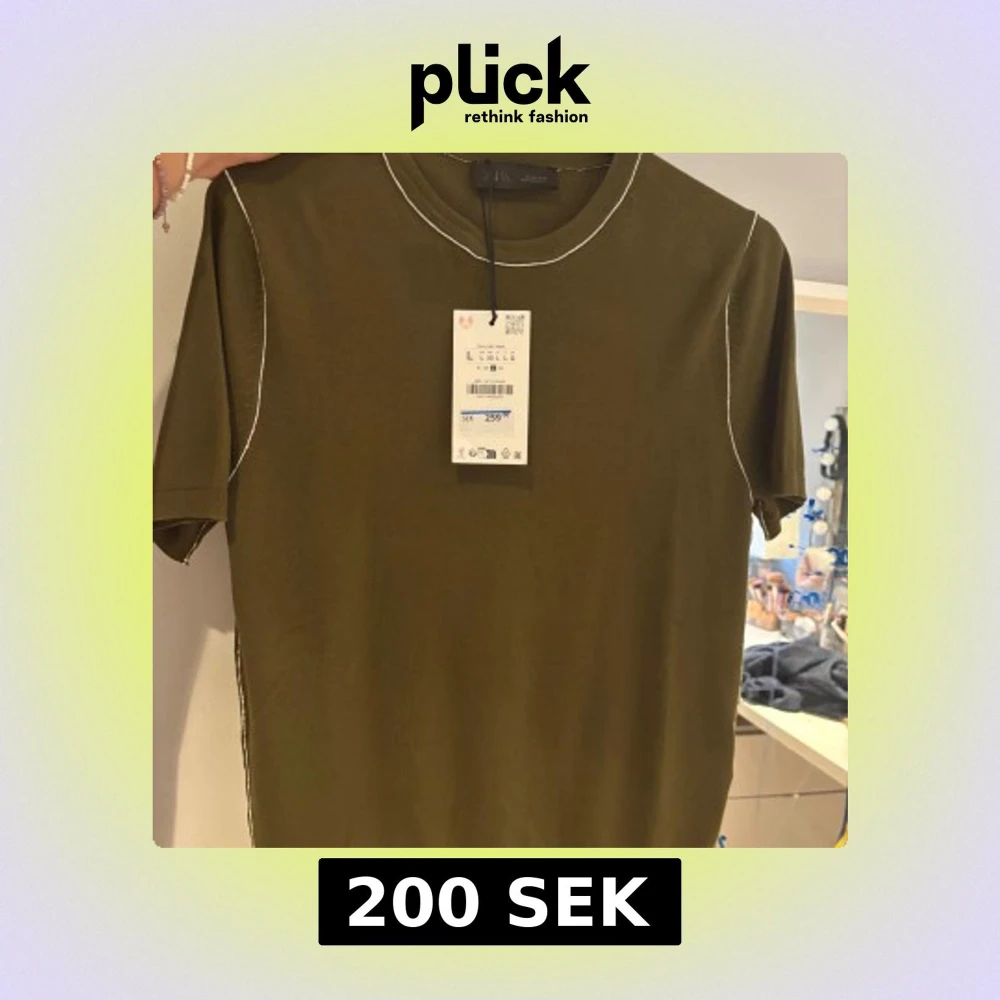 Olivgrön t-shirt från Zara i storlek L. T-shirten har korta ärmar och vita
