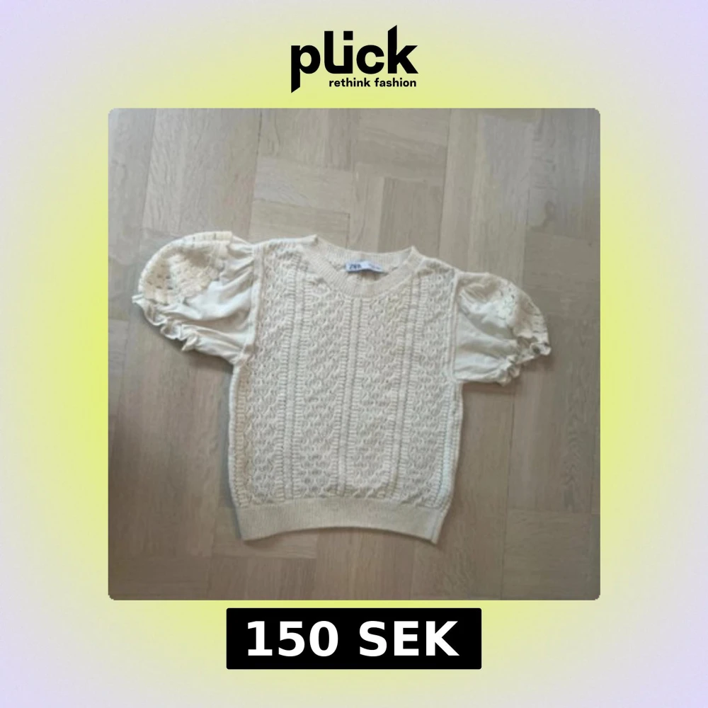 Supersöt beige blus från Zara med stickad framsida och detaljerad spets. Hör av er vid frågor