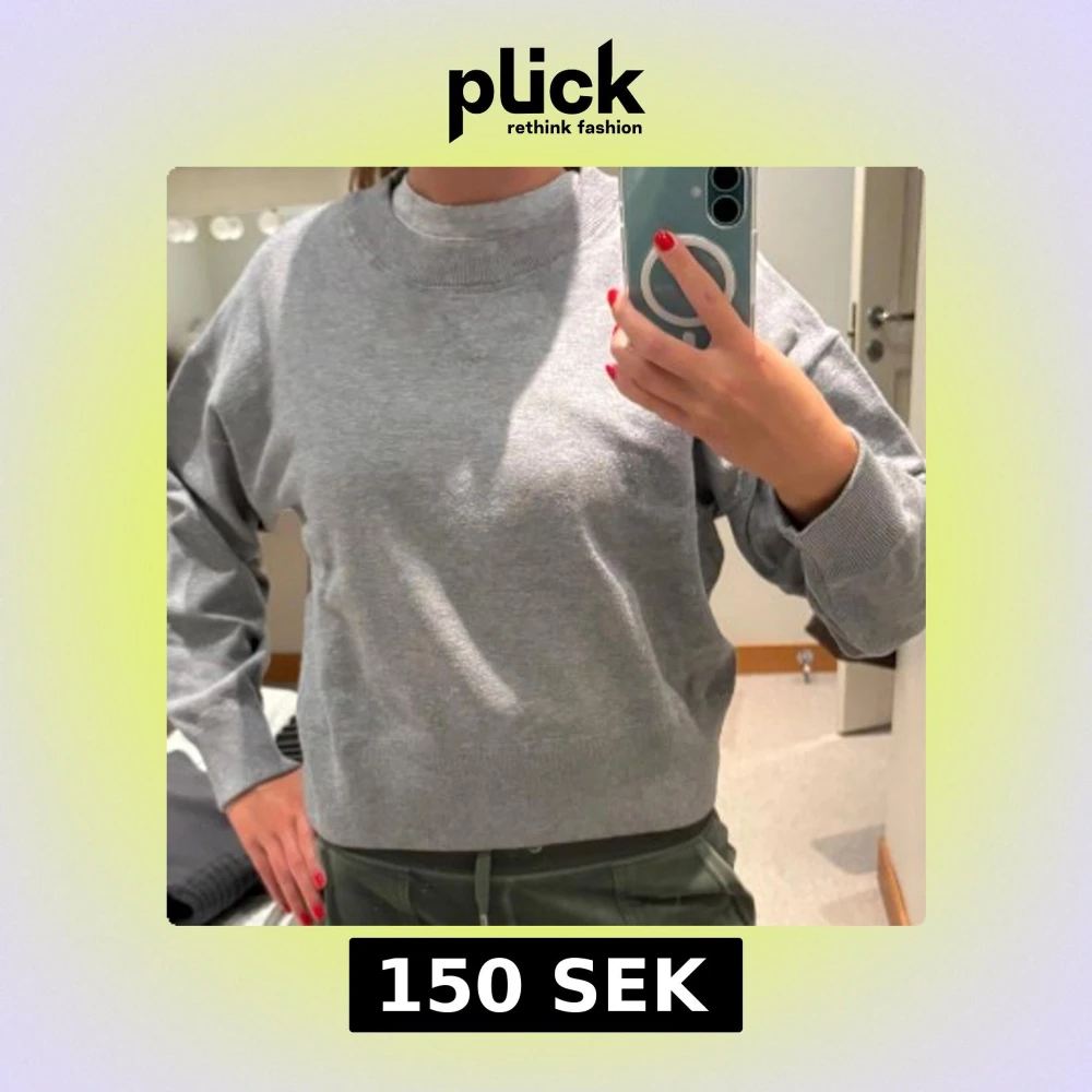 En enkel och stilren grå sweatshirt med rundad hals och ribbade muddar vid ärmslut och nederkant. Tröjan har en loose passform och är långärmad, perfekt för chill dagar. Materialet känns mjukt och bekvämt mot huden, troligtvis bomull eller polyester.