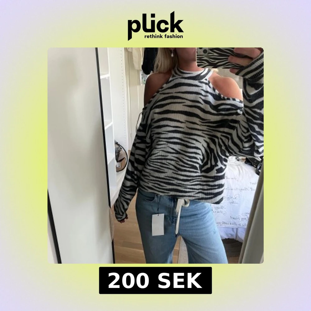 Säljer en tröja från ginatricot med svartvitt zebramönster. Tröjan har offshoulder-design med hög hals och långa ärmar. Materialet är mjukt och ribbat, köpt på Karlaplan i höstas. Kommer inte till användning längre