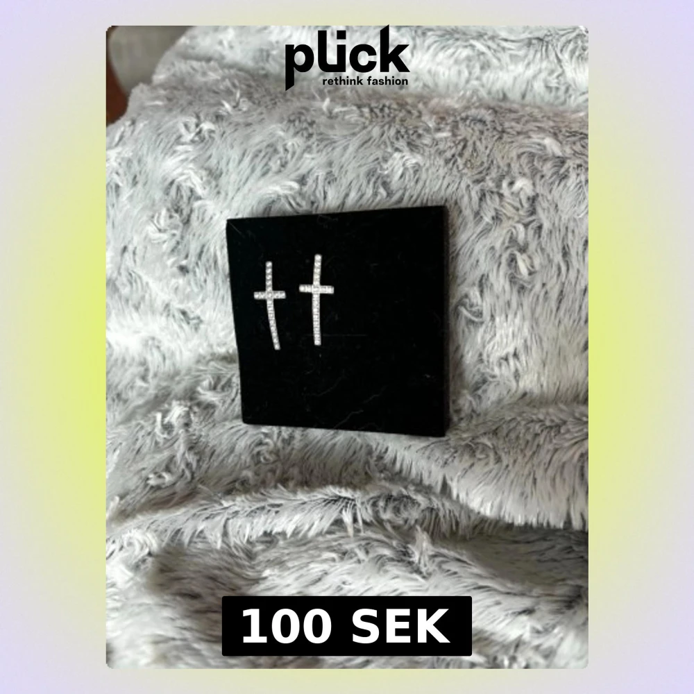 Säljer ett par silvriga örhängen i form av kors, dekorerade med små gnistrande stenar. Perfekta för dig som gillar stilrena och trendiga accessoarer med lite edge. Snygga att matcha med flera andra smycken.