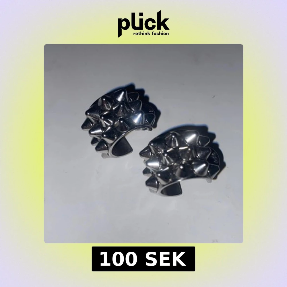 Coola örhängen i silverfärgad metall med ett unikt designmönster av små nitar över hela ytan. De har en halvcirkelformad stil och stängs med klassisk ploppbaksida. Perfekta för dig som gillar edgy accessoarer och vill sticka ut.