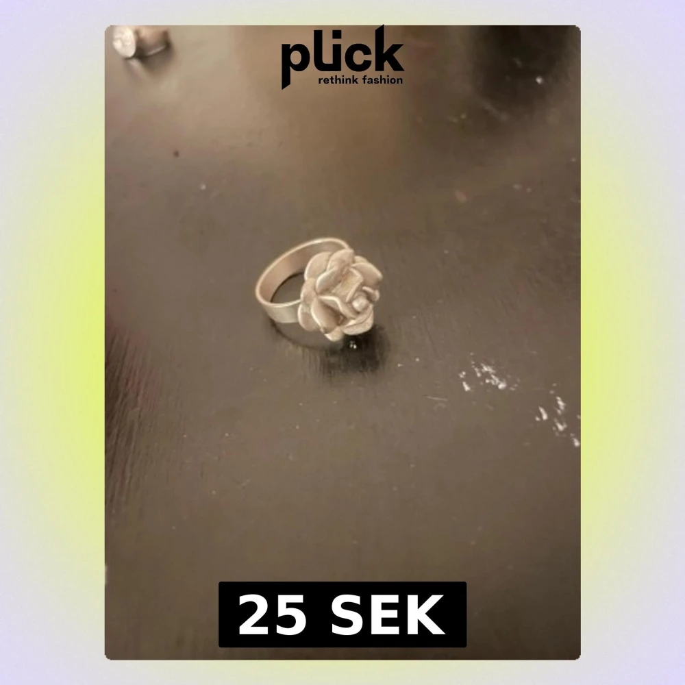 Säljer en stilrena ring i silverfärg med rund rosdetalj. Klassisk design som ger en elegant touch till din look. Perfekt för dig som gillar minimalistiska smycken.