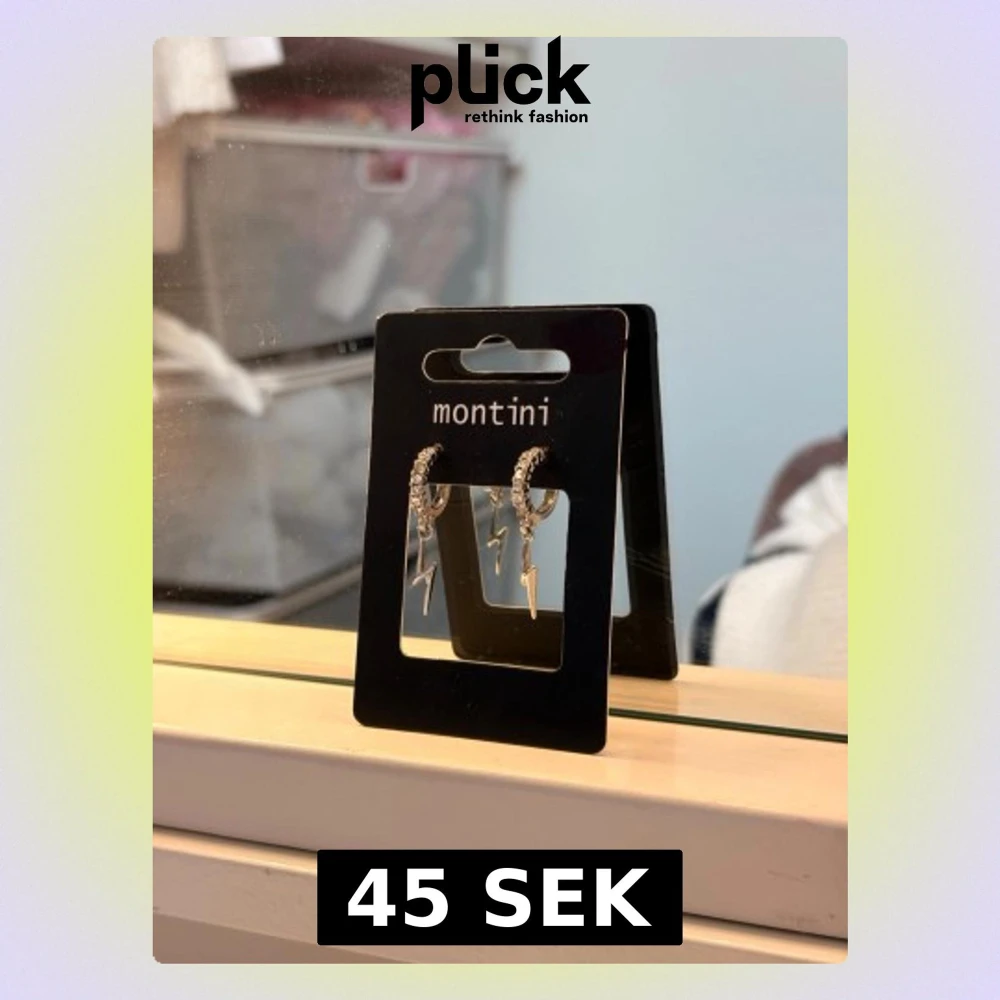 Säljer ett par silvriga örhängen från ur & Penn med små gnistrande stenar på ringen och hängande blixtberlocker. Örhängena har en modern och edgy look, perfekta för att lyfta vilken outfit som helst. Materialet är metall med stenar för extra bling.