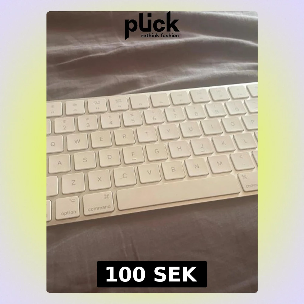 Säljer ett Apple Magic Keyboard i vit färg med låg profil och slimmad design. Tangentbordet är trådlöst och har svenska tangenter. Tillverkat i plast och aluminium, perfekt till Mac-datorer.
