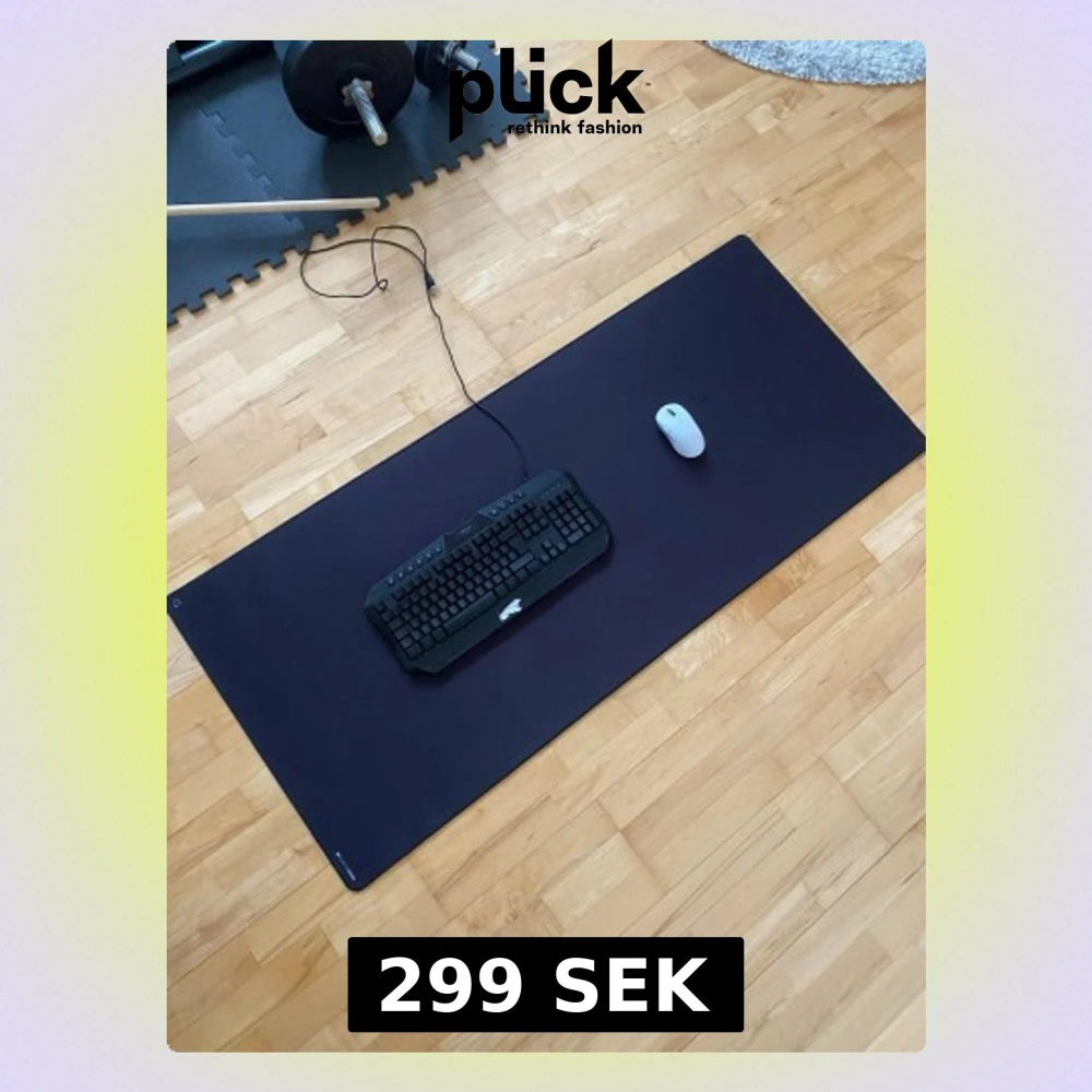 Säljer en stor svart musmatta som täcker hela skrivbordet, perfekt för gaming eller kontor. Mattan har en slät yta som ger bra precision för både tangentbord och mus. Enkel design utan mönster och tillverkad i mjukt material för bekväm användning.