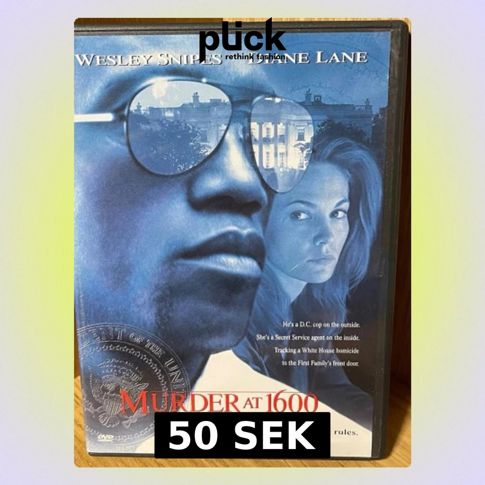 Säljer en DVD med filmen 'Murder at 1600' i originalfodral. Omslaget är svart med tryckt text och bilder från filmen. Filmen är en thriller med spännande handling och flera språkval. Perfekt för dig som gillar kriminalfilmer och samlar på DVD.