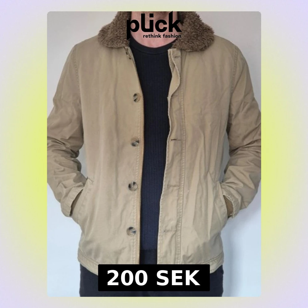 Snygg beige jacka med brun teddykrage och knäppning framtill. Jackan har två sidofickor och muddar vid ärmsluten. Perfekt för kyligare dagar och ger en avslappnad men stilren look.
