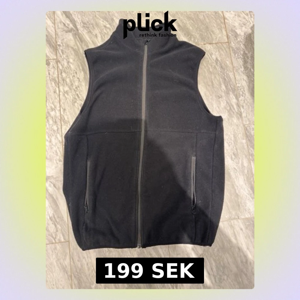 En stilren svart fleeceväst med hög krage och hel dragkedja framtill. Västen har två fickor med dragkedja på sidorna och är ärmlös för en avslappnad look. Perfekt att slänga på över en hoodie eller tröja för extra värme.