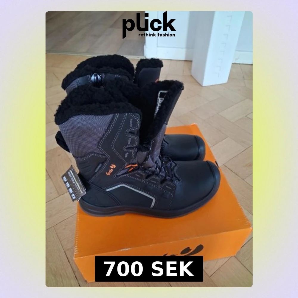 Svarta vinterstövlar från Gesto, modell Tor, med snörning och fluffigt svart foder. Stövlarna har robust platt sula, förstärkta detaljer och reflekterande inslag. Utsidan är i slitstark syntet och skinn, perfekt för kalla dagar. Snyggt orange logotyptryck på sidan.... ny pris ca 2000 kr