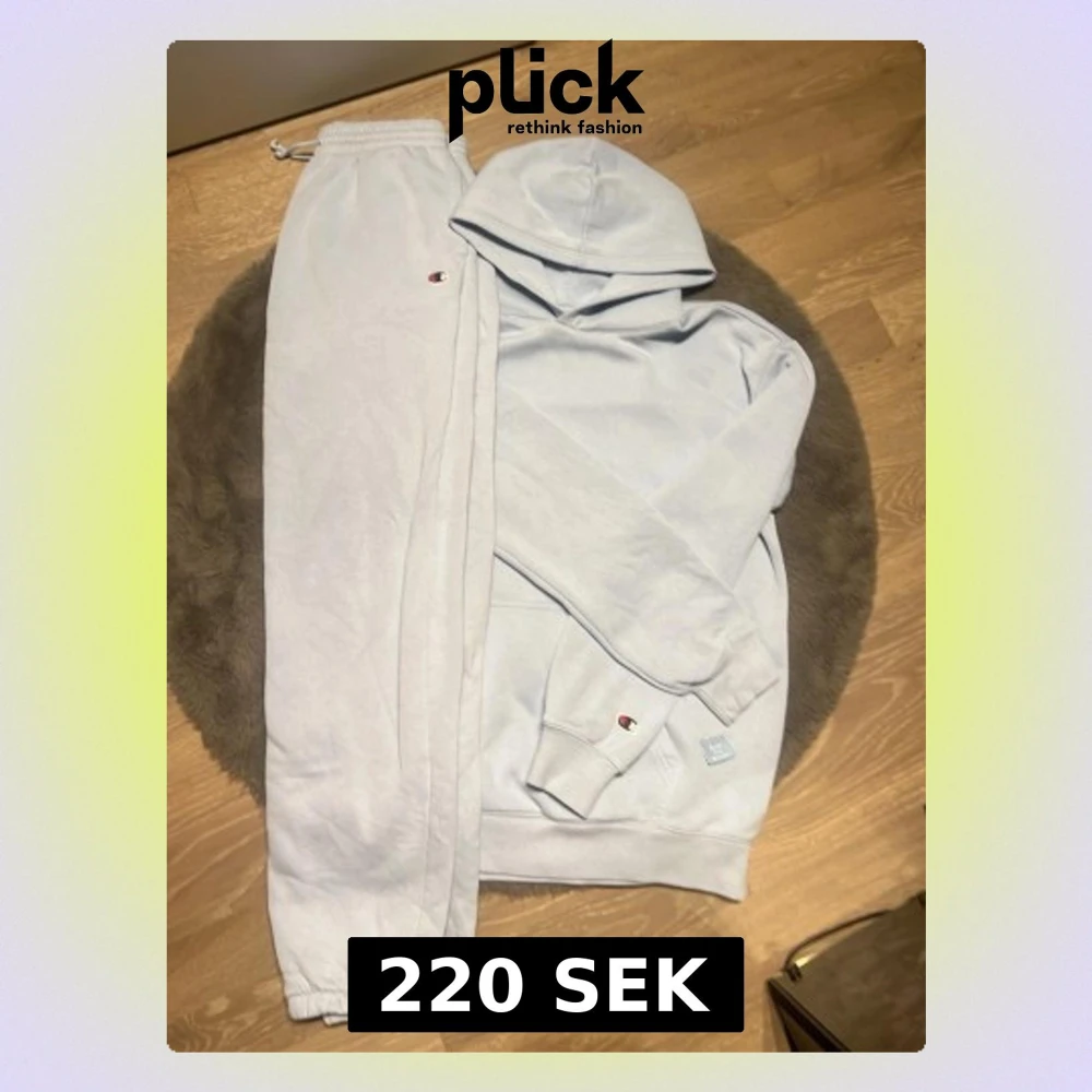 Säljer en stilren baby blå hoodie från Champion med klassisk huva och magficka. Champion-loggan sitter diskret på ärmen och en liten etikett finns vid fickan. Hoodien har ribbade muddar vid ärmslut och nederkant. Perfekt för en avslappnad och sportig look.