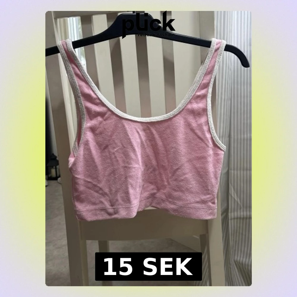 Söt rosa linne med vita kanter. Storlek L men passar som en xs/s