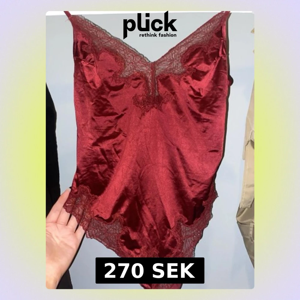 En vi röd body som har spets både uppe och nere med ett tunt material så är bra att användas på sommaren eller festtillfällen