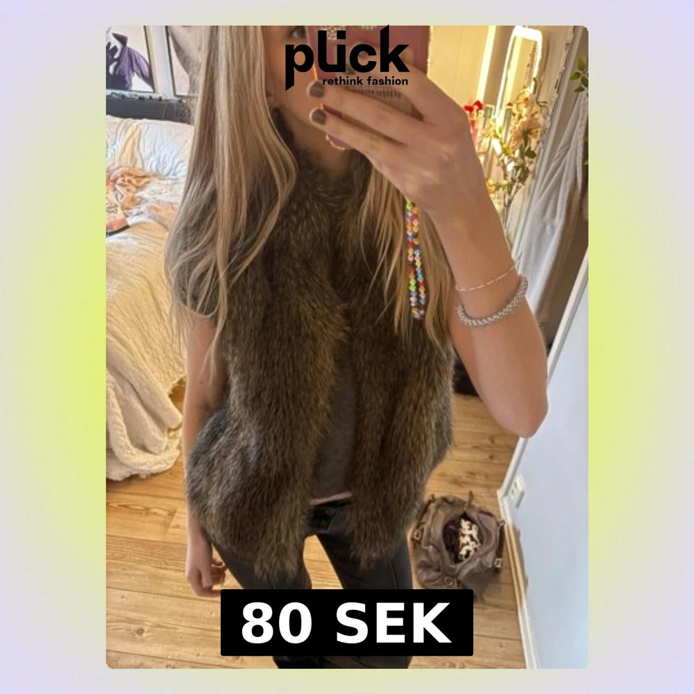 Superfin faux fur fuskpäls väst från HM. Inga defekter! Perfekt nu till våren 🌸passar som S/M, har även fickor!