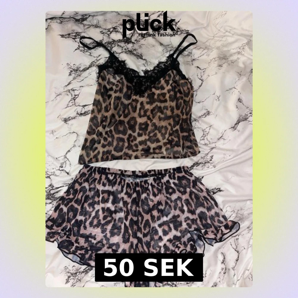 Nattlinne med matchande underdel/ pyjamas, i leopard mönster, settet är rätt genomskinligt. Aldrig använd.