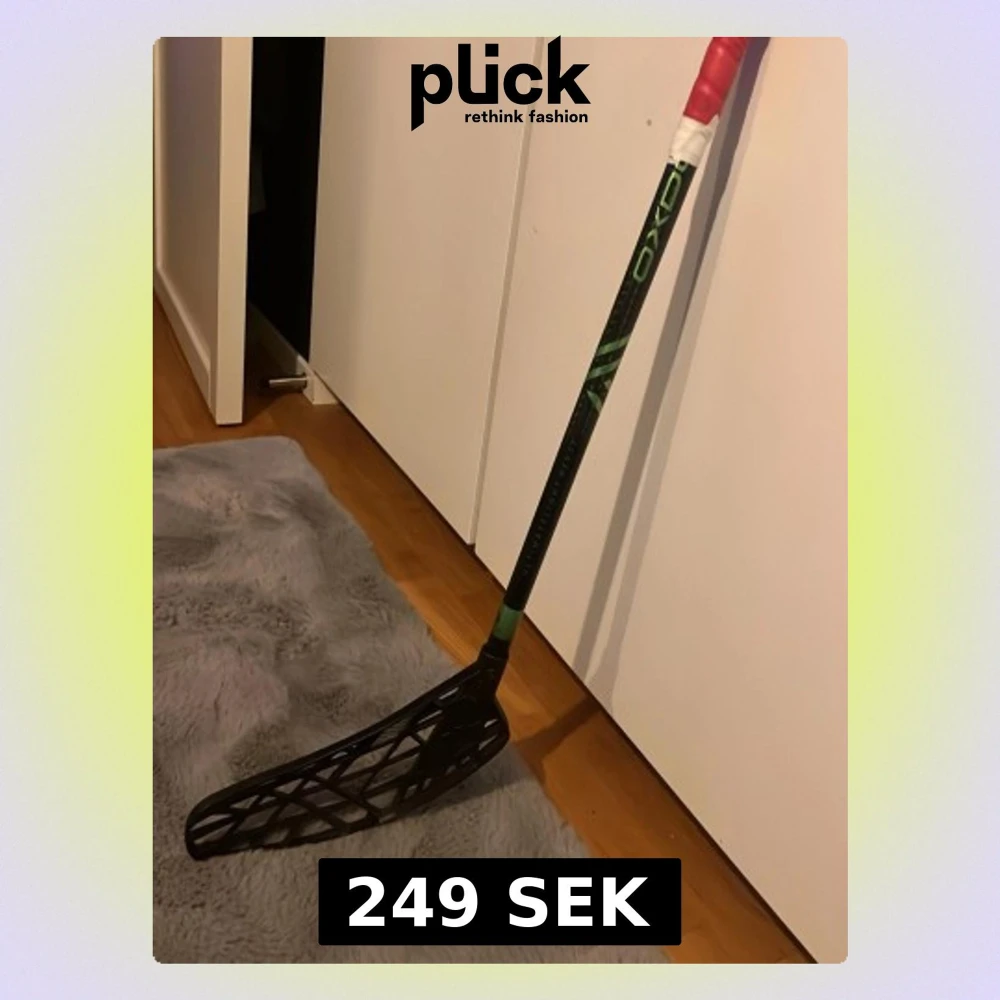 Säljer en MINI OXDOG innebandyklubba i svart med gröna detaljer. Klubban har ett svart blad med öppet mönster och skaftet är lindat med rött och vitt grepp. Perfekt för dig som gillar innebandy och vill ha en lätt och smidig klubba.