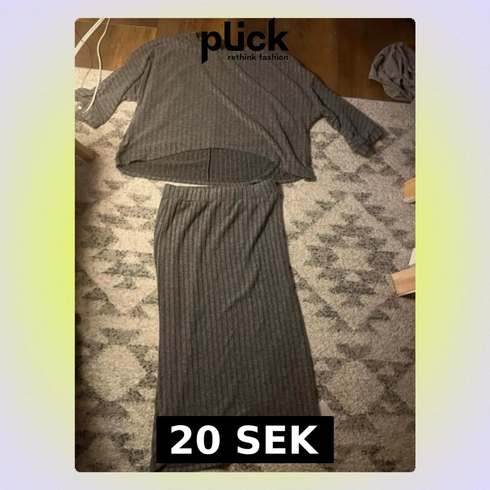 Mysigt tvådelat loungewear-set i mjukt ribbat material. Setet består av en lös, långärmad topp med rund hals och en matchande lång kjol med resår i midjan. Perfekt för chill dagar hemma eller när du vill vara bekvämt klädd. Kjolen är som S men överdelen är som M
