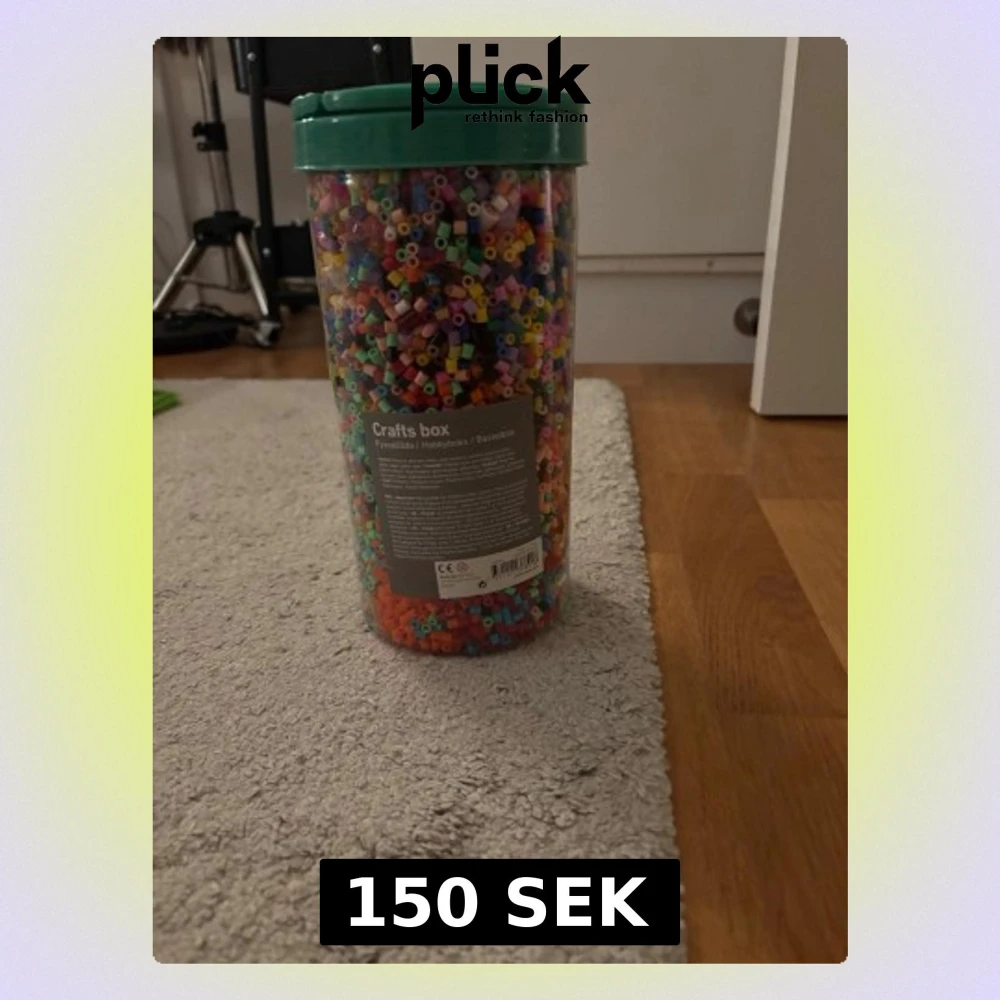 En stor behållare med färgglada pärlor för pyssel. Skicka för fler bilder. Går att köpa i bundle med annat.