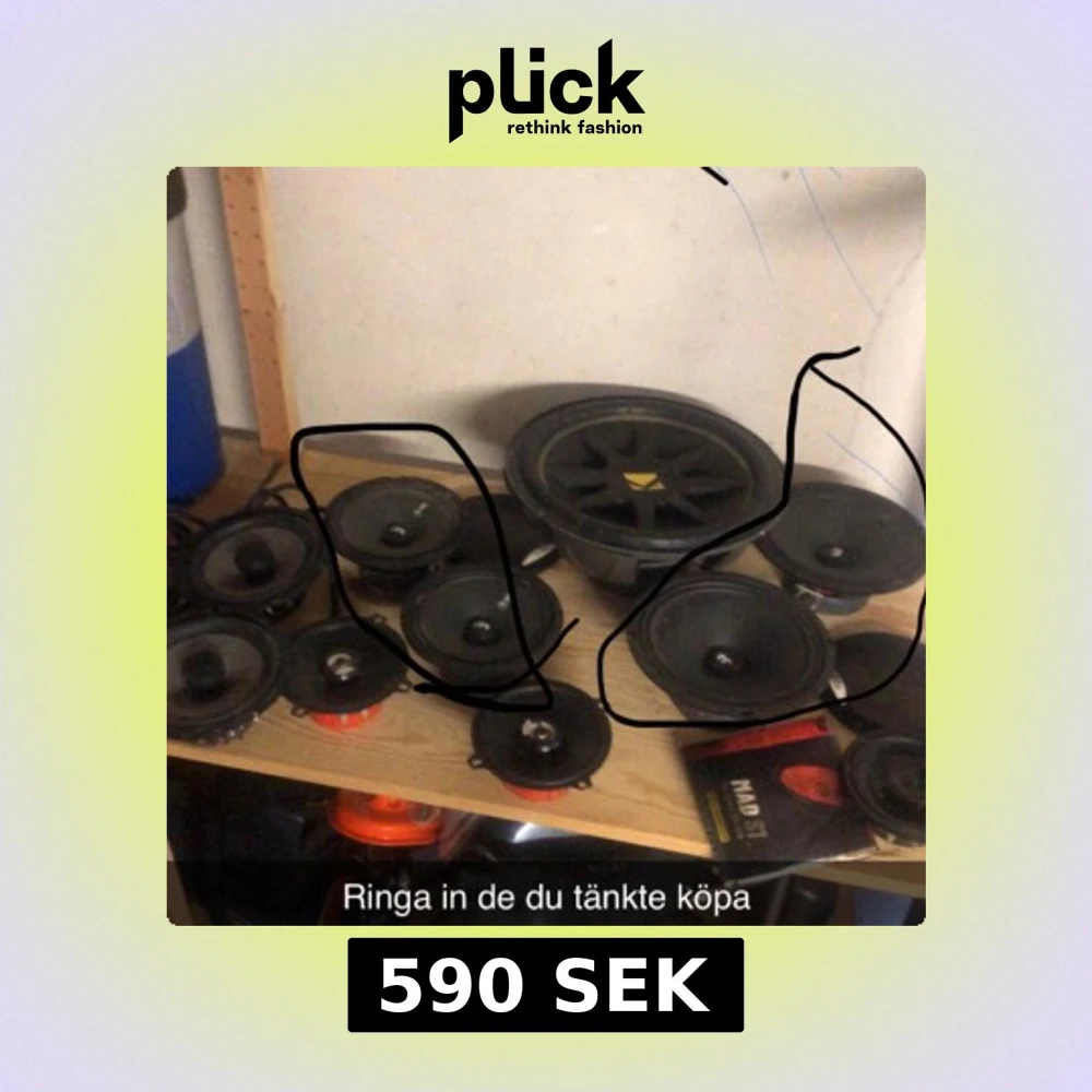 Flera bilhögtalare och en stor subwoofer säljes. Olika storlekar och modeller, vissa med synligt slitage men i överlag bra skick. Perfekt för dig som vill uppgradera bilens ljudsystem. Välj vilka du är intresserad av.