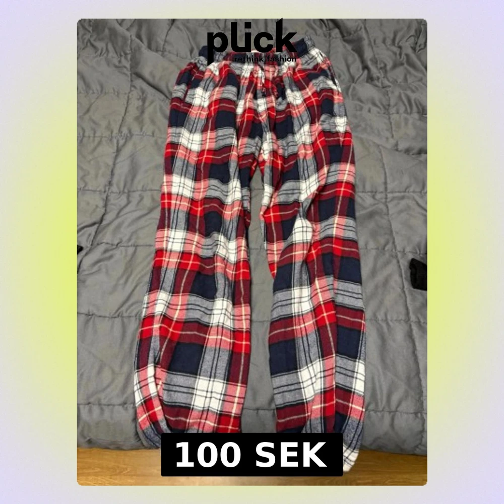 Mysiga byxor i röd, blå och vit rutig design från Cubus, Tillverkade i mjuk bomull med resår i midjan och avslappnad passform. Storlek S