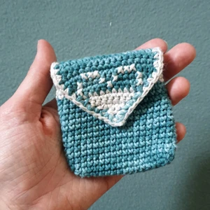 En välgjord virkad söt liten påse, kan användas som påse för hörlurar eller annat smått och gott♡