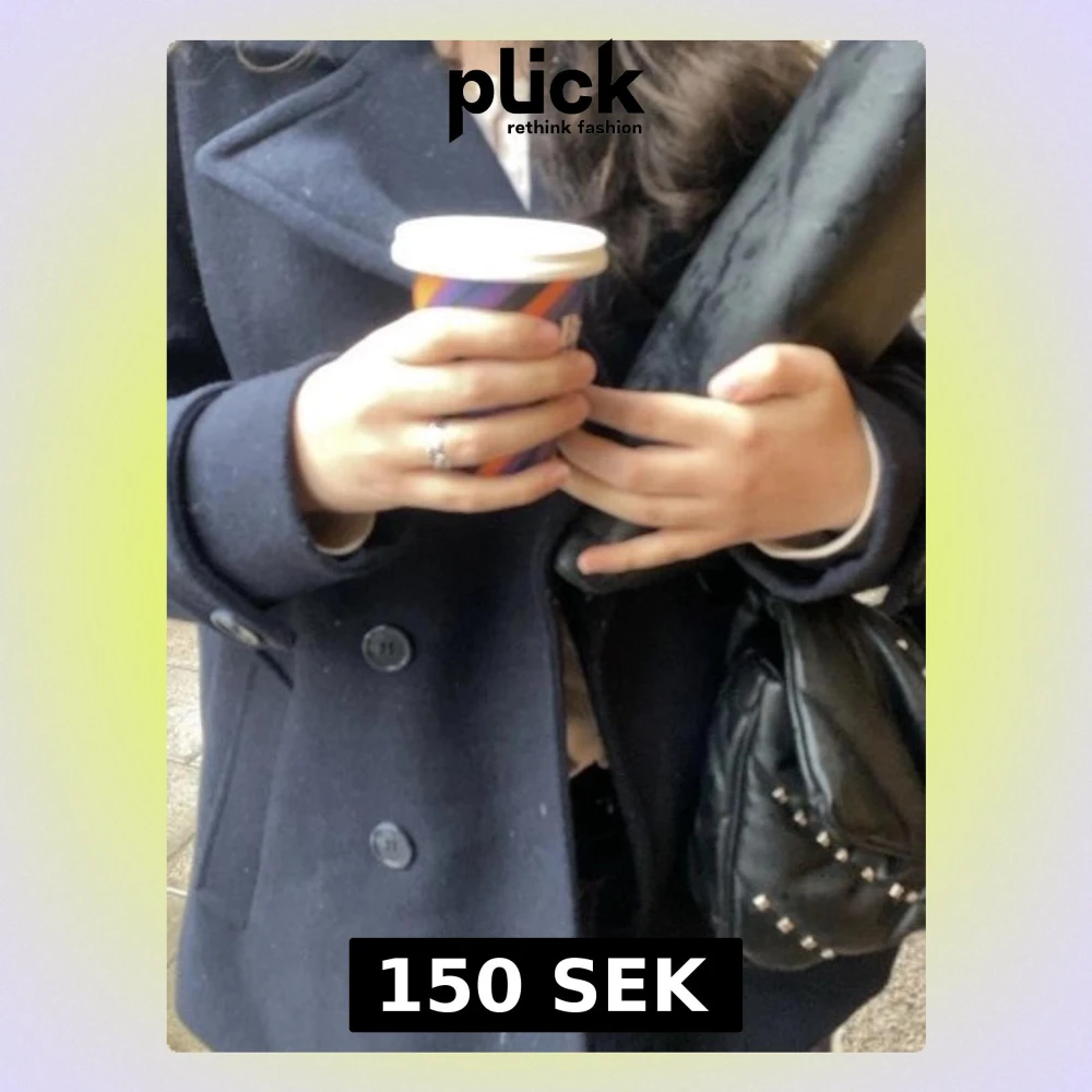 Stilren mörkblå kappa med dubbelknäppning och bred krage. Klassisk design med stora knappar och raka ärmar. Perfekt för dig som vill ha en tidlös och snygg look till hösten eller vintern.