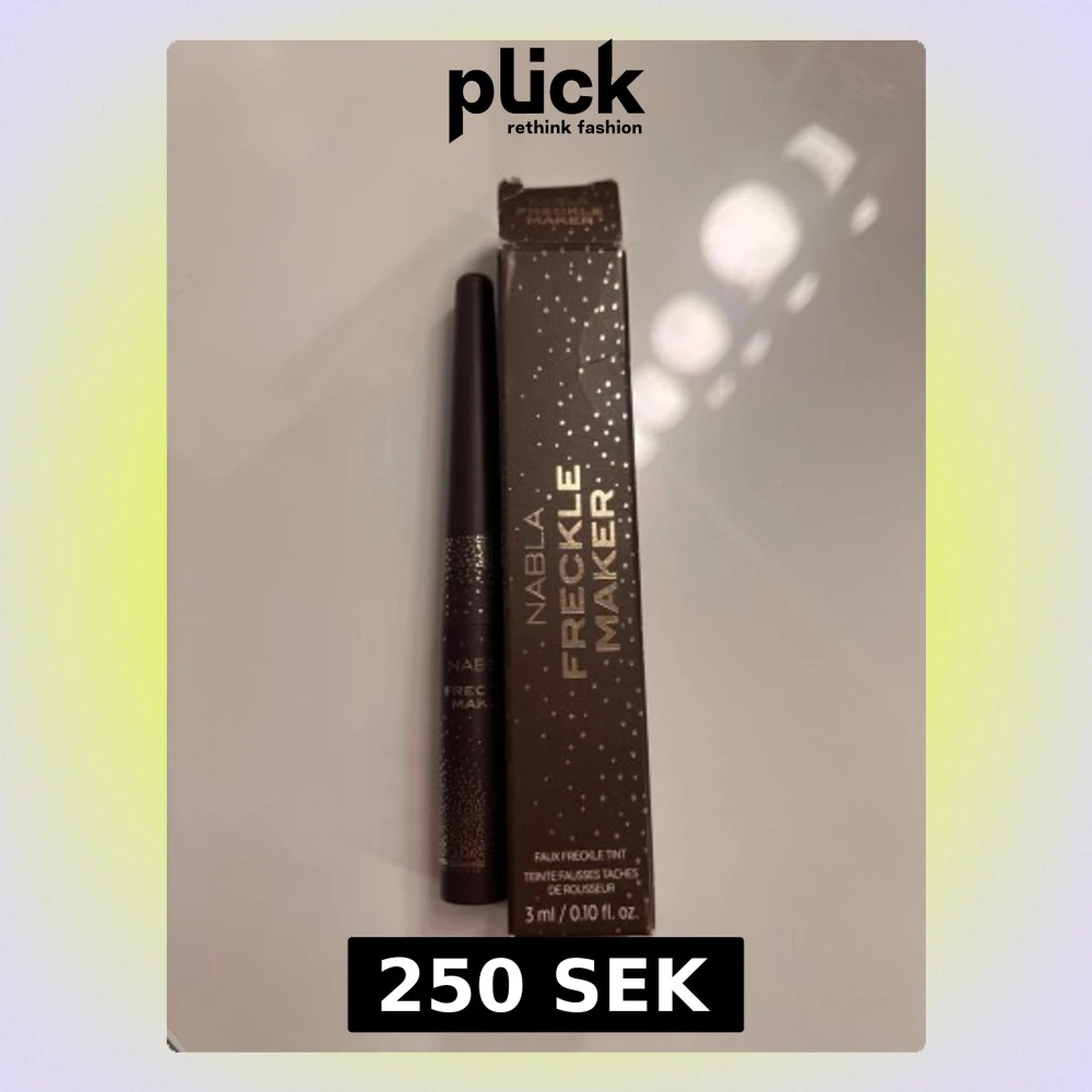 Nabla Freckle Maker är en flytande produkt för att skapa naturliga fräknar. Kommer i en brun tub med guldiga detaljer och tillhörande förpackning. Enkel att applicera med smal spets för precision.