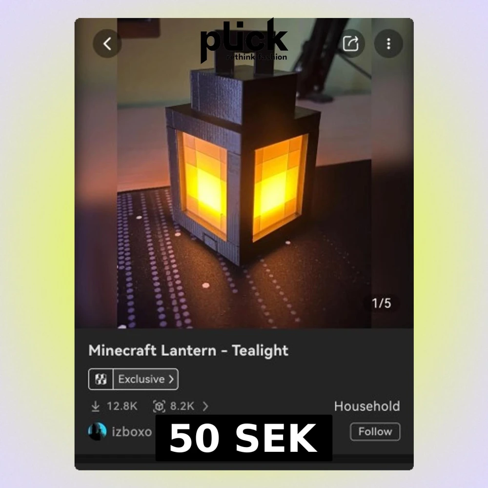 En fyrkantig dekorationslykta inspirerad av Minecraft, med svart ram och gula paneler som ger ett pixeligt intryck. Lyktan är tillverkad i plast och har ett handtag upptill. Perfekt för dig som gillar gaming och vill ha något unikt till rummet.