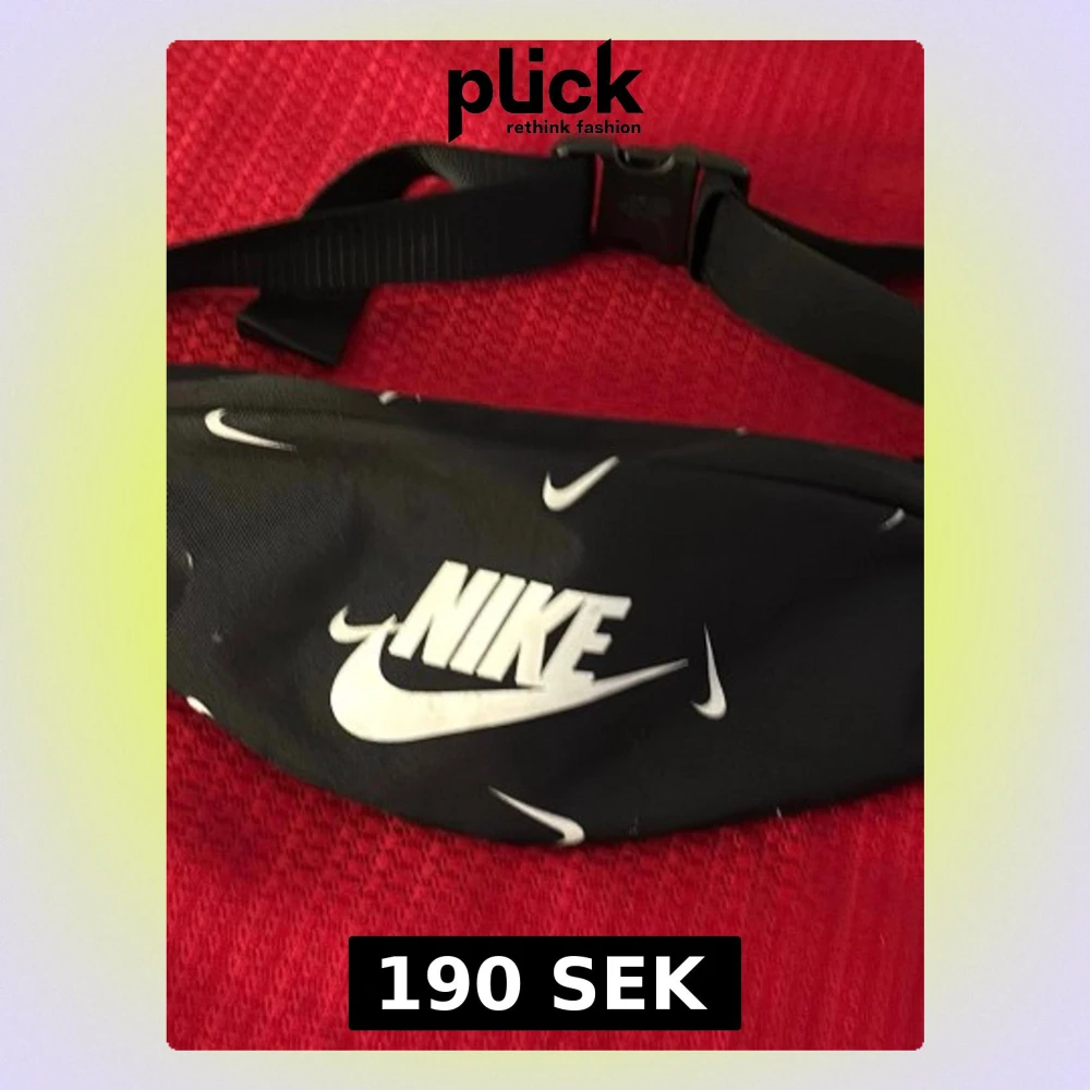 Snygg svart magväska från Nike med flera vita loggor och justerbart spänne. Perfekt för att bära det viktigaste och har en sportig look. Tillverkad i slitstarkt tygmaterial och passar till streetwear eller träning.