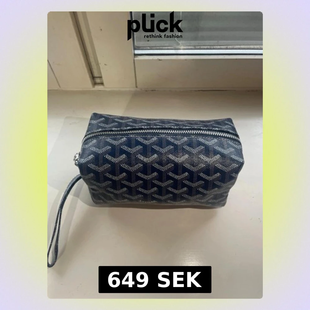 Helt ny Snygg blå necessär från G*oyard med det klassiska mönstret i vitt och grått. Väskan har en rektangulär form, dragkedja upptill och en praktisk handledsrem. Perfekt för att organisera småsaker eller smink. Tillverkad i tåligt canvasmaterial.