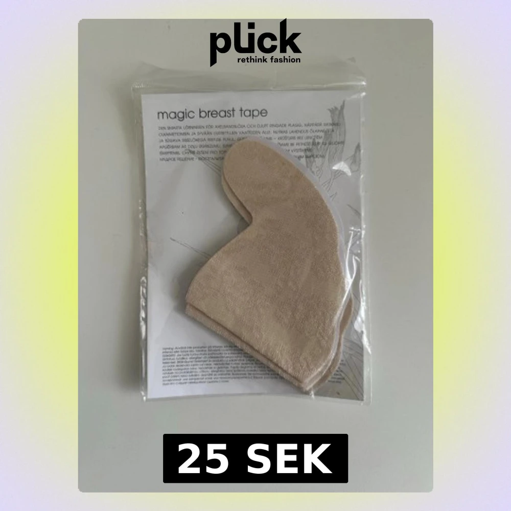 Helt NYA Magic breast tape från Lindex i beige med vacker spetsstruktur. Tejpen är formad för att ge stöd och lyft utan bh och passar perfekt under plagg med öppen rygg eller djup urringning. Materialet är mjukt och flexibelt för att sitta bekvämt mot huden. Nya i förpackning.