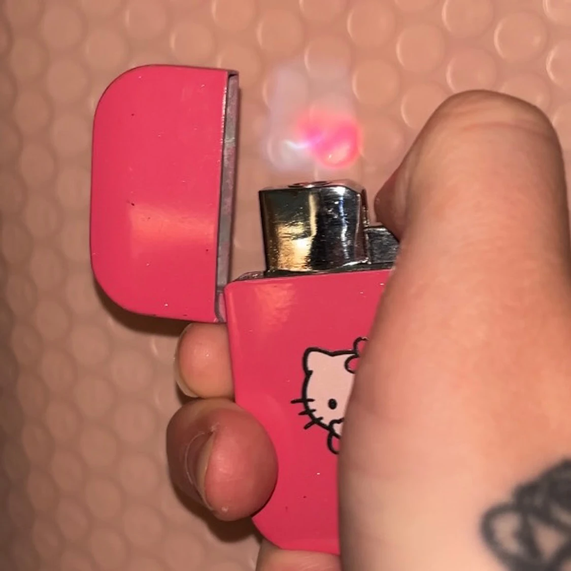 Rosa glittrig hello Kitty tändare med rosa flame. Den är slut så man måste fylla på med gas