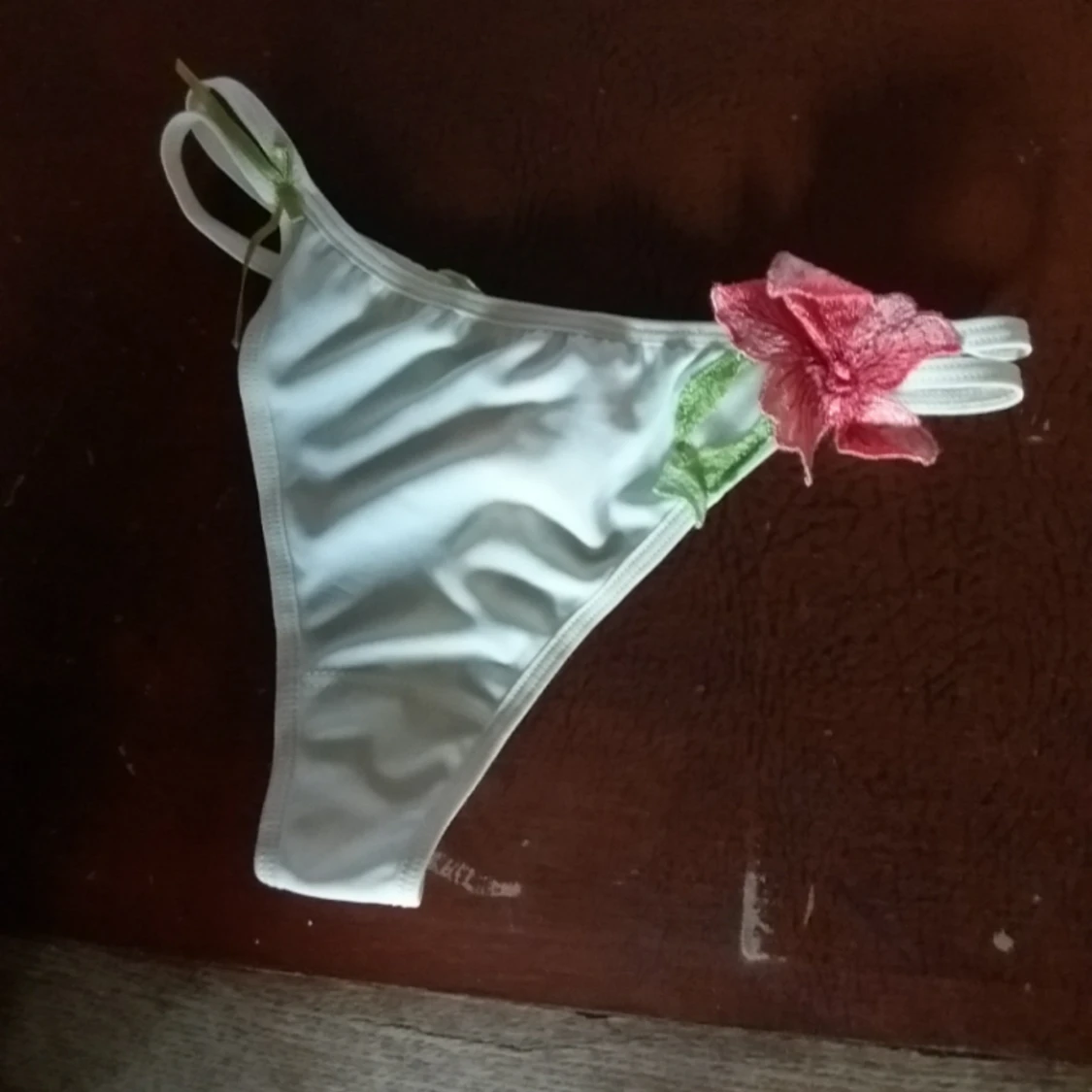 Jättefina stringtrosor i storlek 36 aldrig använda i krämvit med vackar blommor på