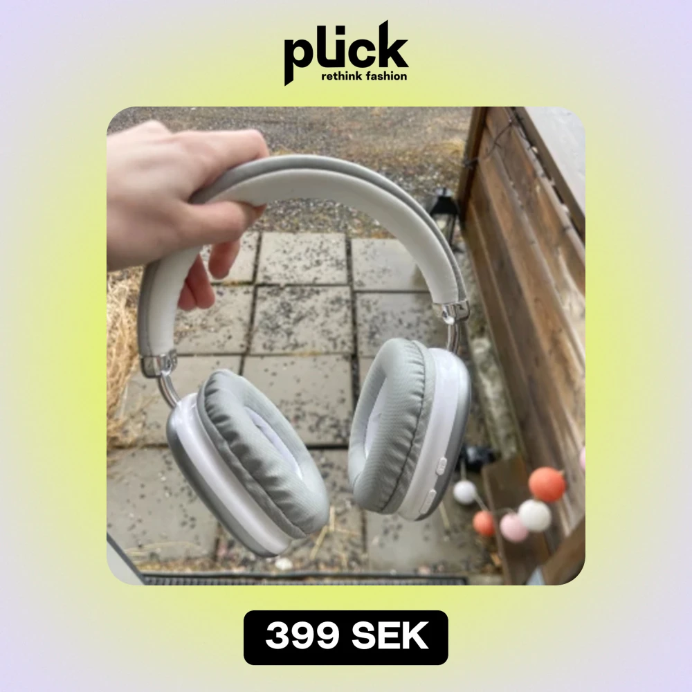 Trådlösa Bluetooth-hörlurar (har även mikrofon). I gott skick utöver några mindre repor. Laddare medföljer.
