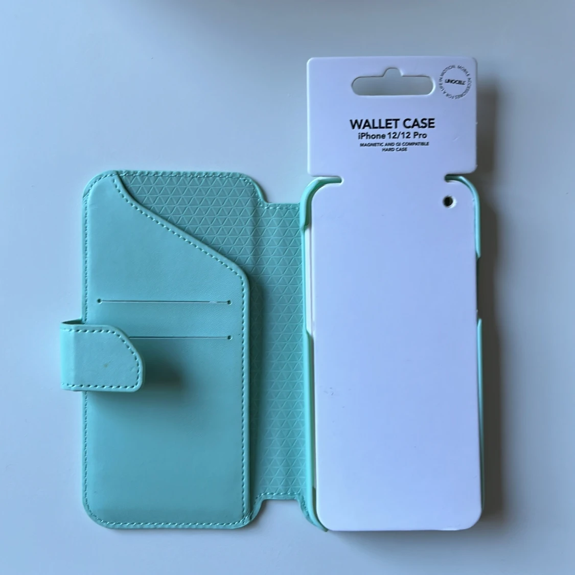 Helt ny! O Jätte fin mobilplånbok för iPhone 12 och 12 PRO, jätte härlig turkosa färg. ( Råkade köpa fel modell så den passar tyvärr inte min telefon.) Nypris: 299kr men säljer för 100kr