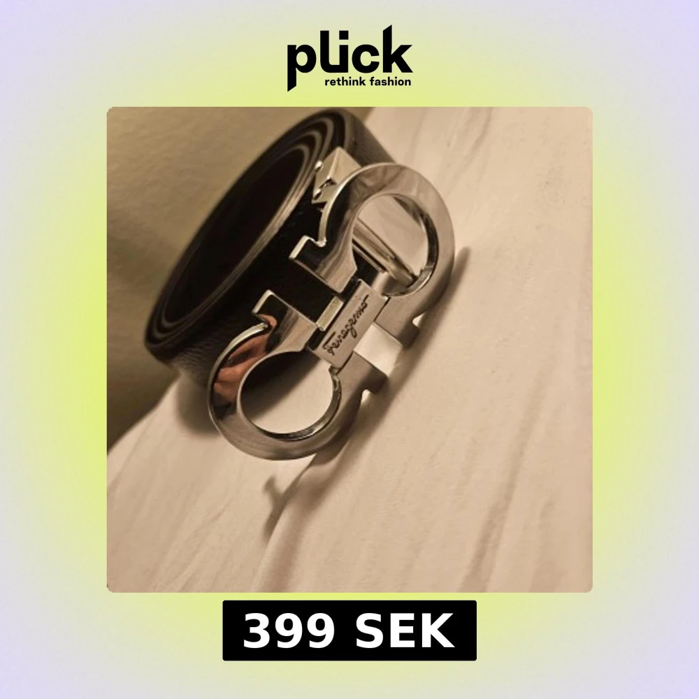 Säljer ett svart skärp från Ferragamo med ikoniskt dubbel-Gancini-spänne i blankt silver. Bältet är gjort i äkta skinn och har en stilren, klassisk design som lyfter vilken outfit som helst. Perfekt för dig som gillar exklusiva accessoarer.