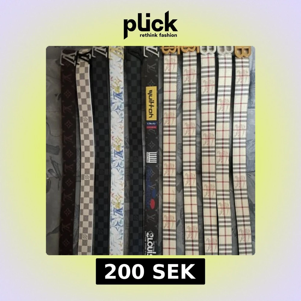Säljer flera snygga designerbälten från Louis Vuitton och Burberry. Bältena har klassiska rutiga och monogrammönster, i färger som brun, svart, beige och vit. Spännen i guld och silver. Perfekt för dig som vill ha en statement-accessoar med lyxig känsla.