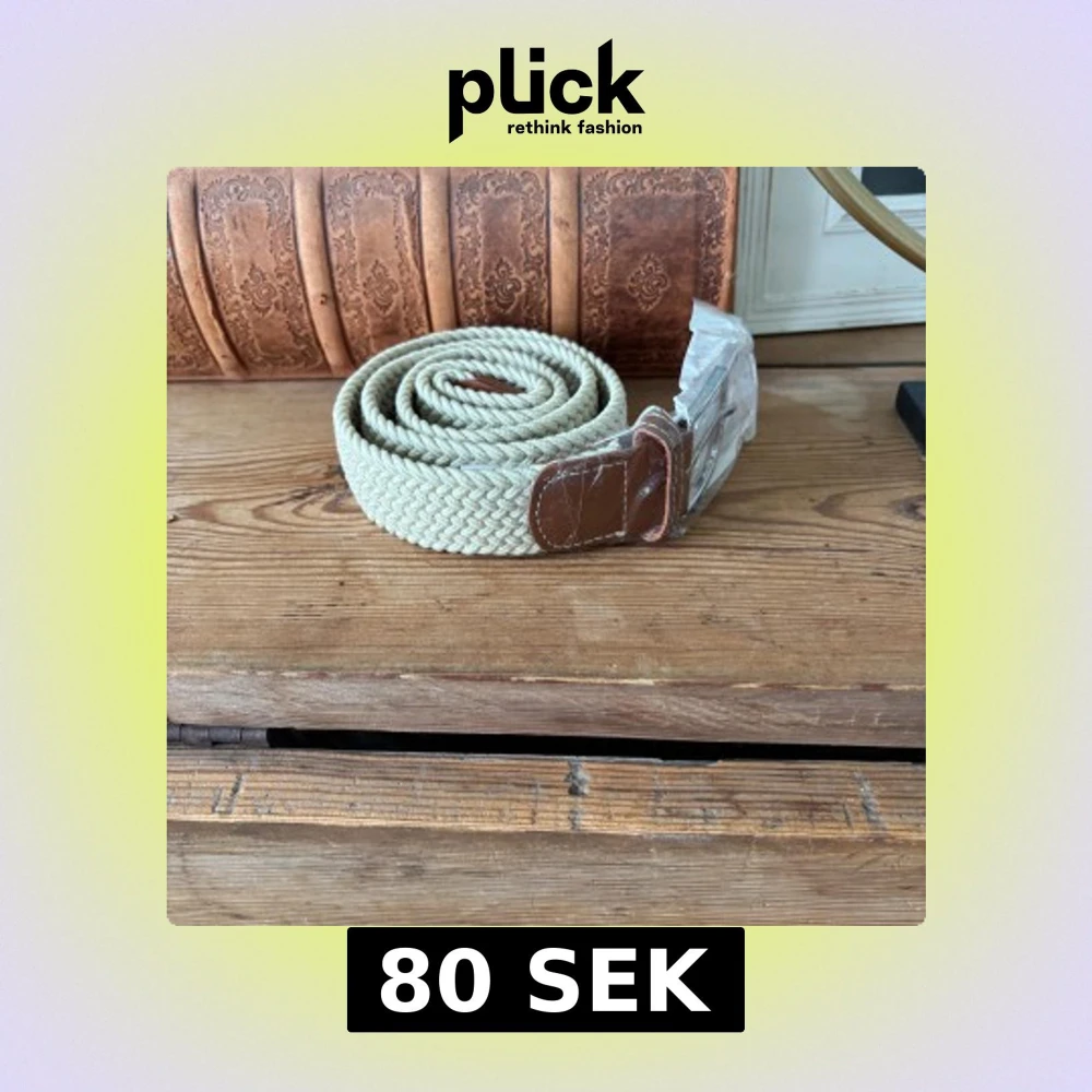 Snyggt beige flätat bälte med detaljer i brunt skinn och silverspänne. Perfekt accessoar för att lyfta din outfit. Bältet har en klassisk design och passar till många olika stilar.