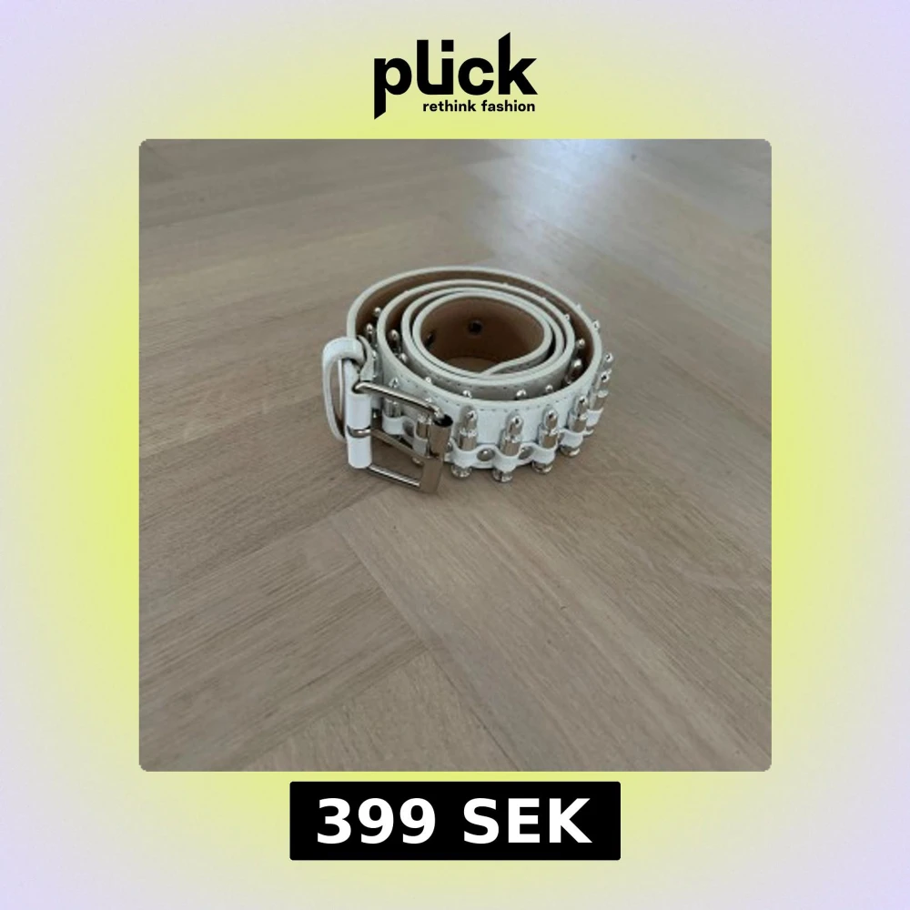 Snyggt vitt bälte i skinn med silvriga nitar längs hela framsidan. Bältet har en klassisk metallspänne och flera hål för justerbar passform. Insidan är beige och bältet har en cool, edgy vibe som lyfter vilken outfit som helst.