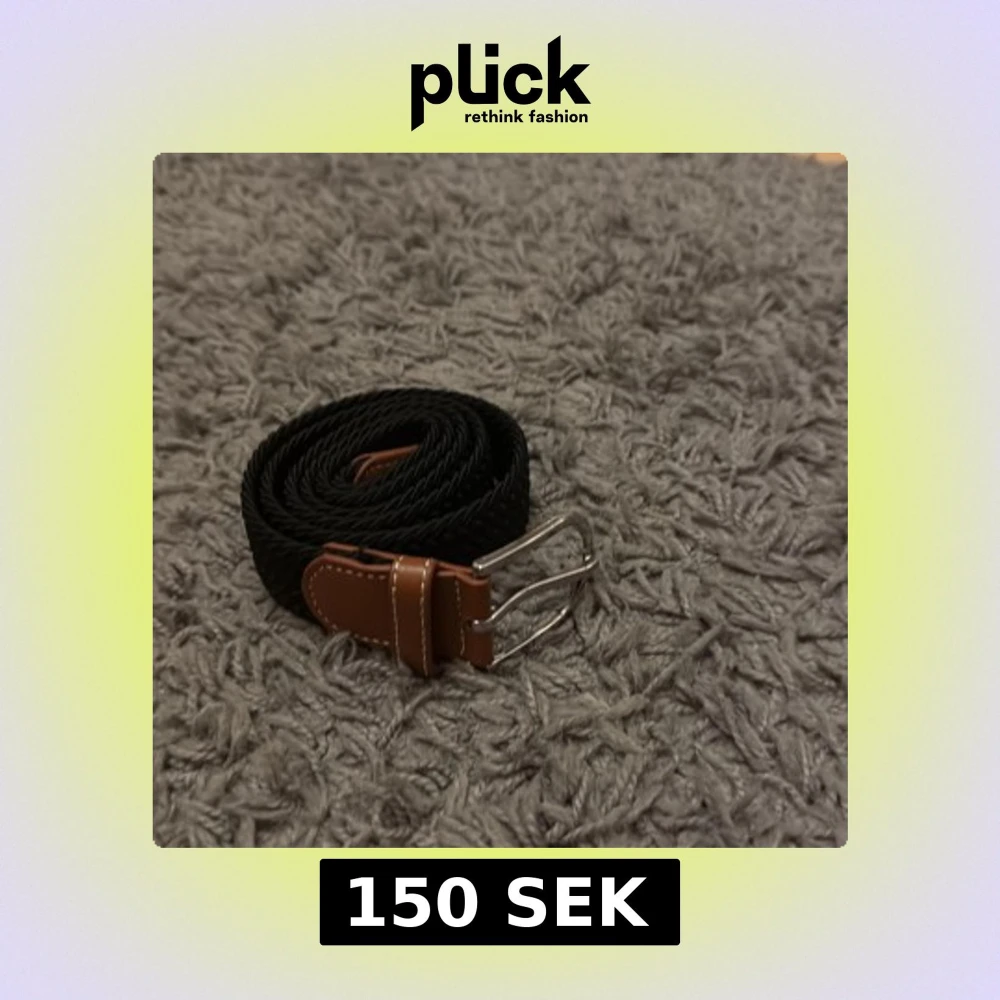 Snyggt svart flätat bälte med bruna skinnliknande detaljer och silvrigt spänne. Bältet har en stilren design med kontrastsömmar på de bruna partierna och passar perfekt till jeans eller chinos. Enkel att justera tack vare det flexibla materialet.