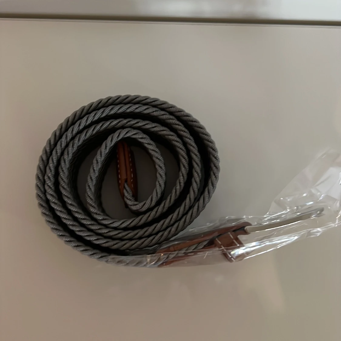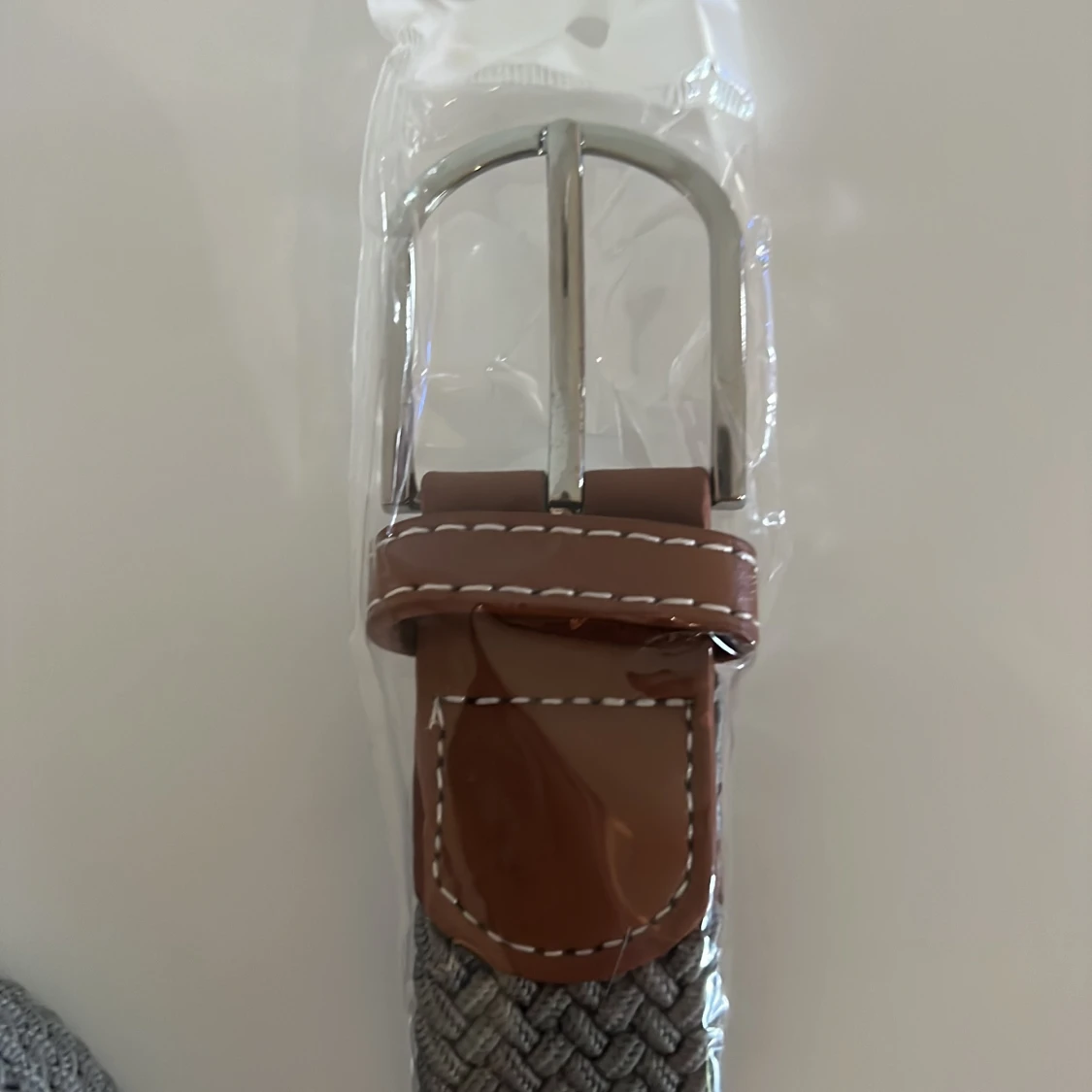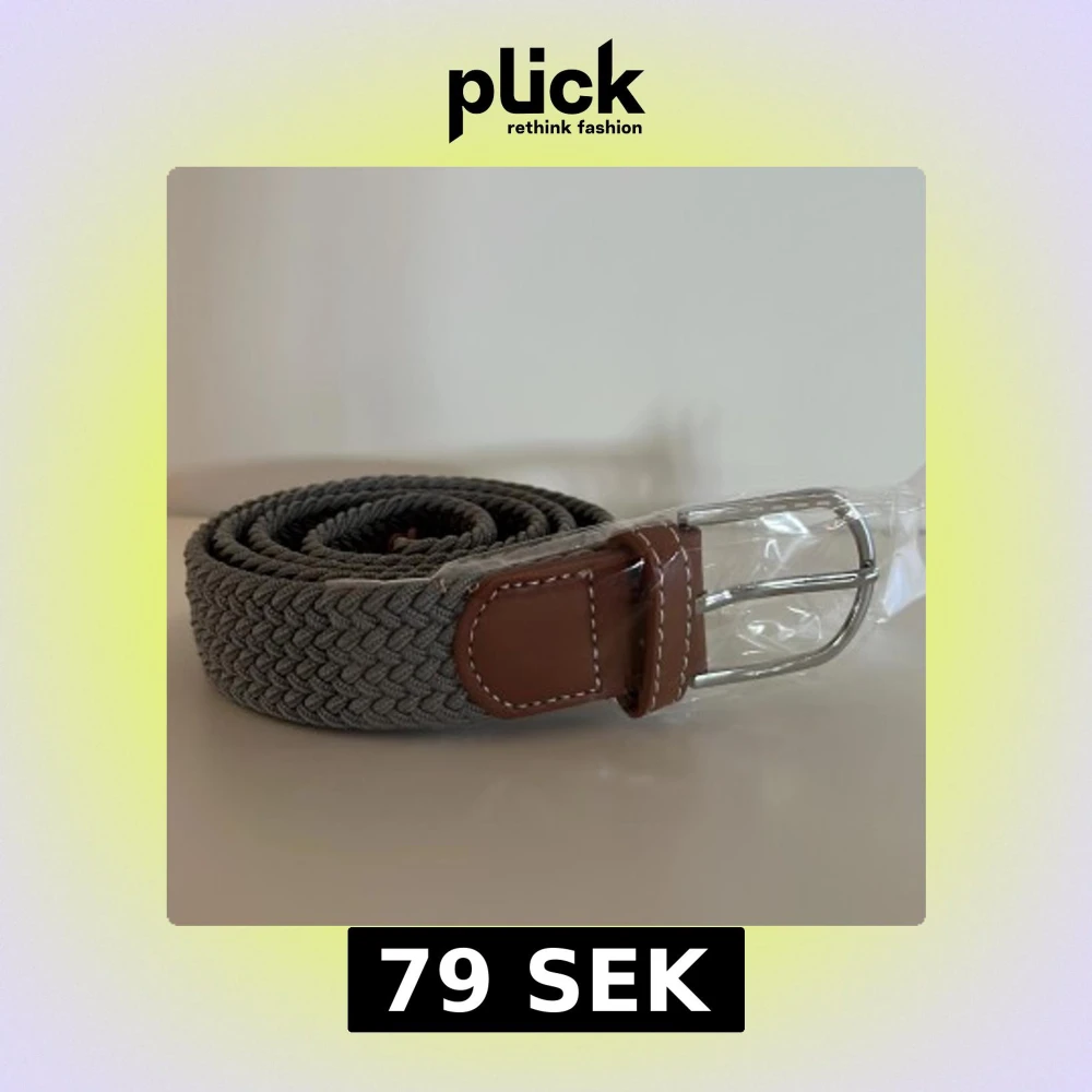 Snyggt grått flätat bälte med bruna skinn-detaljer och silverspänne. Perfekt accessoar för att lyfta din outfit. Bältet har en klassisk design och passar till många olika stilar. Är elastiskt!