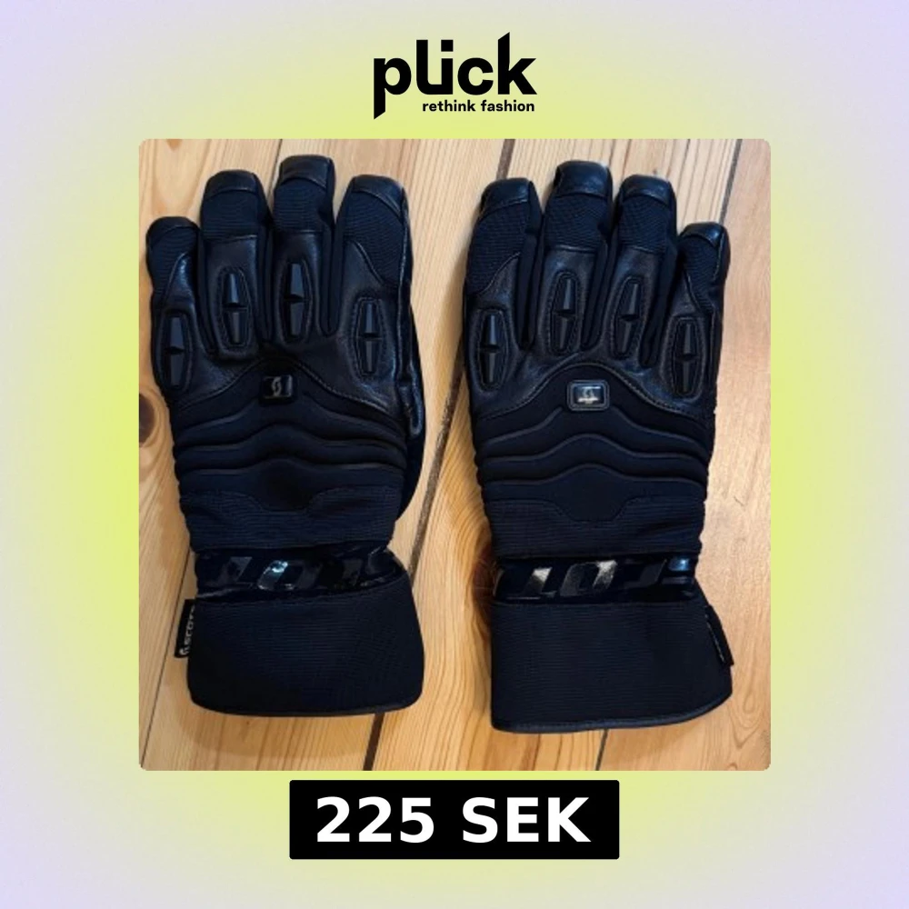 Svarta handskar från Scott med robust design och förstärkta partier på ovansidan. Gjorda i skinn med detaljer i syntetmaterial och breda muddar. Perfekta för dig som vill ha extra skydd och stilren look.
