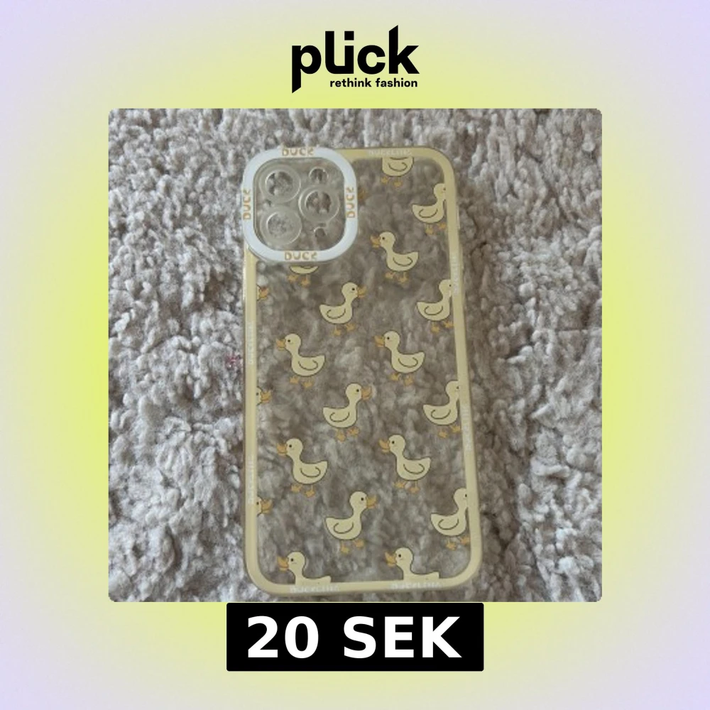 Sött genomskinligt mobilskal med gulliga gula ankor och texten 'DUCKLING' runt kanterna. Skalets design är lekfull och passar perfekt för dig som vill ha något unikt och charmigt till mobilen.