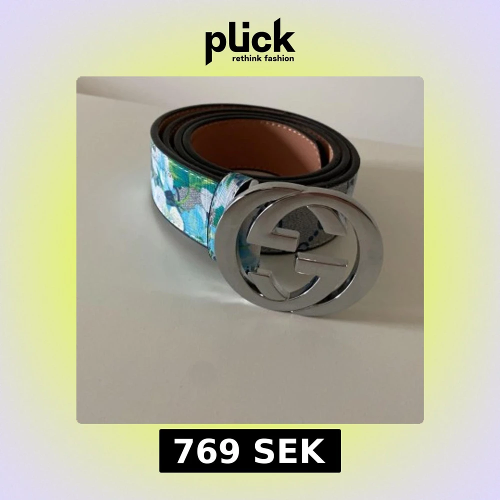 Snyggt bälte från GGmed stort silverfärgat GG-spänne. Bältet har ett blommigt mönster i blått, grönt och vitt på klassisk GG-canvas. Insidan är i ljust skinn. Perfekt accessoar för att lyfta din outfit.
