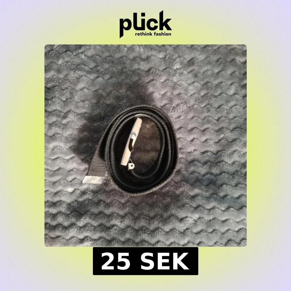 Säljer ett svart tygbälte med klassiskt silverfärgat metallspänne. Bältet är enkelt och stilrent, perfekt för att ge en clean look till jeans eller byxor. Spännet är rektangulärt och har en smidig låsmekanism. Bältet är justerbart och passar de flesta.