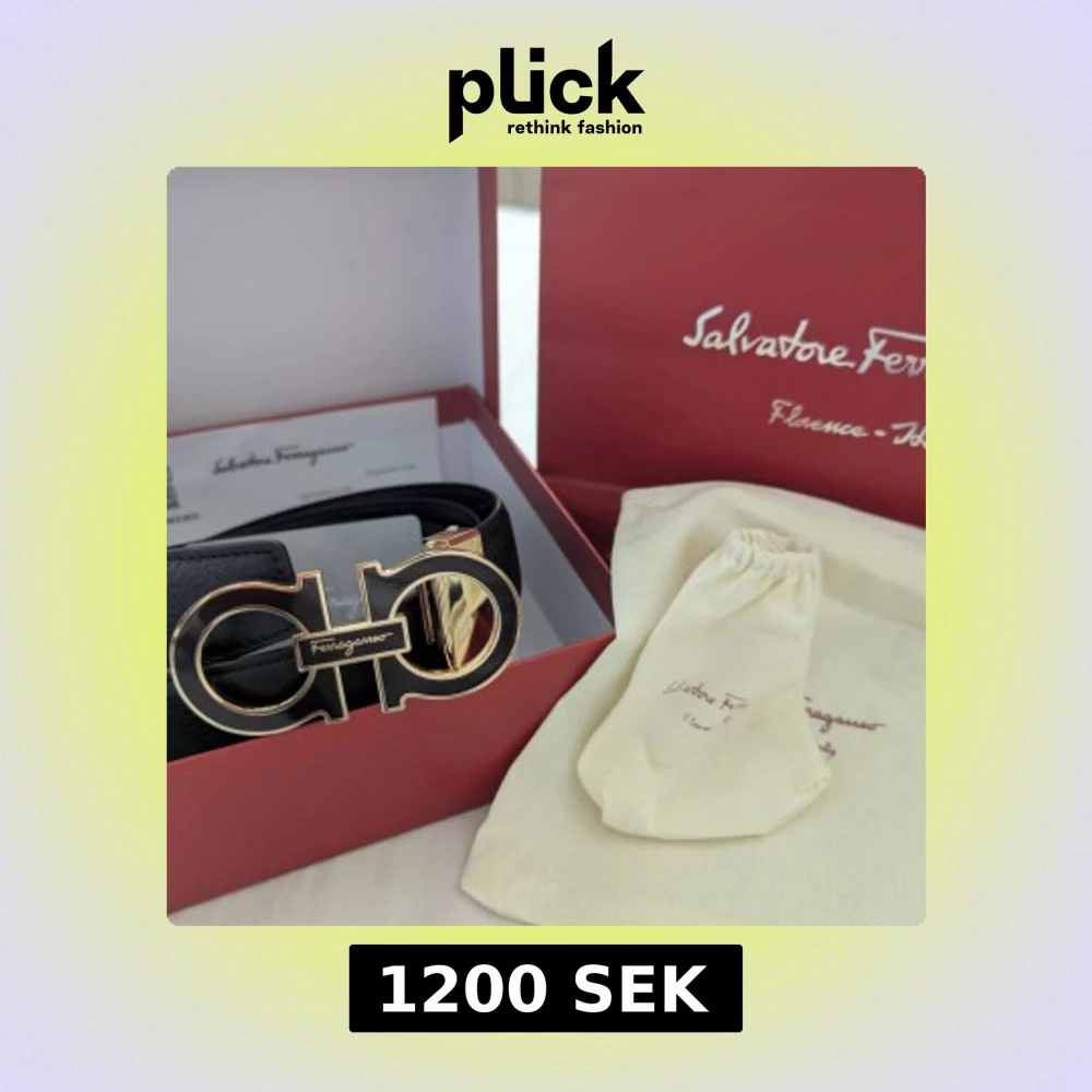 Snyggt svart bälte från Salvatore Ferragamo med exklusivt Gancini-spänne i guld och svart. Bältet är tillverkat i äkta skinn och har en stilren, klassisk form som lyfter din outfit. Kommer med originalförpackning och dustbag.